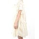 噗通噗通地,小花正在呼吸,身体的小气泡呼噜呼噜地,像珍珠般串连起一条条气泡通道。米色圆圆织纹棉布,不规则圆弧曲线,领口随兴的小结,呈现出一种呼吸般自在柔软地氛围。