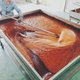 新鲜老姜榨汁后加入沸腾中的甘蔗汁一同熬煮,经龙眼木柴火慢火蒸煮至水分蒸发,充满浓郁姜香的姜味黑糖出炉啦!