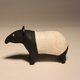 身体像熊 ,鼻子像象 ,眼睛像犀 ,尾巴像牛 ,腿像老虎 ,据说是从前神创造动物的时候,把剩下的半段物用来创造了貘。