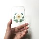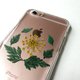 【1】手机壳是全透明包四边的软壳,手机壳表面会灌一层宝石胶把花材封起来,花材最终会相嵌在中央,所以不用担心会掉落问题。有些花朵比较厚或有重叠之处,有可能轻微凸起摸得到(例如:雏菊蕊/飞燕花蕊/满天星)