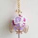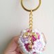 **缎带+拉花花裙缎带+6mm~1cm油珠+0.6cm施蕐洛世奇钻+金色爱心、蝴蝶结吊饰+花裙缎带+金色钥匙圈+水钻贴片**