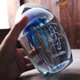 “惊奇水母”公司收集自然死亡的水母尸体,以液态氮加以冷冻保存,再封入椭圆形的透明树脂材质中。设计师特别介绍他们这样真的惊奇的作品给大家,而真的水母当然也就更栩栩如生,可以说是另外的工艺品!