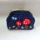 刺绣蘑菇深蓝色口金包● 自家手工製造