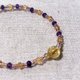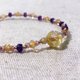 着浓郁透黄的黄水晶她可以带给妳清晰的思路,强化理性的判断力。如此的洞悉力不仅可以让妳自信 up! up! 财富也 up! up! 佐上清透的紫水晶,她能够给予妳智慧,启动妳的无限潜能。带有紫色神秘力量的紫水晶也同时具有趋吉避凶的保护力。最后再趣味地佐上一颗透净又有着光彩金黄发丝的钛晶,更能增强勇气、气魄与财运,so cute!