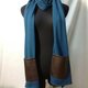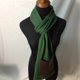 中型风格的咖啡色仿皮革口袋(拒绝使用动物皮革~阿弥陀佛),配上羊毛混纺纱线索编织而成的围巾,创造出兼具造型与防寒效果的长围巾,全长约210CM,让妳可以轻易变化各种造型,不论是男性或女性都适合的造型围巾。