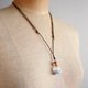 简单的玻璃小瓶内藏紫色有趣的蓝色夜光小石,有小小的玻璃珠装饰,可调节的蜡绳项链。全人手制作。