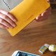 深橘、森林绿是新增的颜色,芥末黄具传统的特性,柔和的棕色令整体双色更有设计感,外层是高级人工皮革,纹理是新设计,内里是防污耐磨的毡面材质。