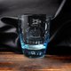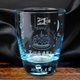 蓝色玻璃杯上的生日蛋糕象征快乐祝福