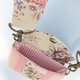 搭配樱花棉布+素面粉色棉布,粉红点点布,双层铺棉,前后底层均有上硬壳板,比一般只有铺棉更具保护性