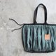 包包内里是比较厚的斜纹布料,外面是雪纺纱料,内外logo则为牛皮皮革喔!