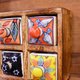 公平贸易组织手工制作的小木柜,在陶瓷的抽屉上手绘图案,卡榫设计让抽屉不会滑落