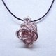 由美国进口艺术铜线手工制作而成的手感金属**螺旋**玫瑰金花链。花坠整体皆是纯手工制作而成。链绳以台湾制造的仿皮绳制作,项围可伸缩调整。