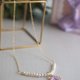Drop type of glass stone in tiny freshwater pearl line is gleaming, 14kgf chain necklace.