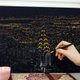 利用刮棒的尖端,刮出一整幅金色的城市夜景图,把整个城市点亮