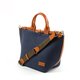 桶形两用皮革帆布包,经上方拉绳, 可变换两种款式。