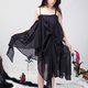* 图片中, 黑色款为绑带后抓皱造型示范, 红花款为未绑带自然垂坠效果