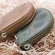 ※零钱包为双色,咖啡色与军绿色,皆为牛皮布料手工车缝。