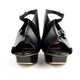 拼接皮革的对比色述说复仇的意志,两用的两色翻转条带设计,让穿着者可以依造心情,变更左右不对称鞋子的小设计,同时显示女人温柔与力量并存的天性。