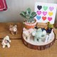**附上软木塞名片夹,动物摆饰两只,陶盆多肉一株,栅栏(随机颜色),干燥花随机搭配,木轮片等