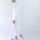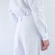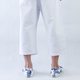 牛仔布质感,宽松剪裁,宽直筒裤型,线条俐落。