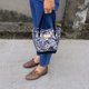 The material of fabric has replaced real leather as brand label of the bag.