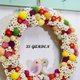 糖果般颜色的千日红+素雅的法国小白梅搭配羊毛毡彩色球和一对鸟儿的干燥花圈~不论是当情人节礼物还是生日礼'结婚礼都非常适合呢!