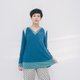 许许儿♪森纷有机棉拼接异材质长版上衣-蓝
