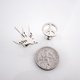 Swallow and Peace sign studs earrings in white bronze handmade by hand sawing