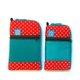 可收纳两只手机,也可放名片型数位相机,前面一拉链分层可放置常用到的备用电池、传书线或是耳机线。附一条可拆式绕颈绳,可挂于胸前。