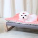 “方形吊床”可以自在地伸展。木制架高床,夏天通风舒服,冬天加上床垫更温暖。床垫可直接下洗衣机洗,床垫枕心使用传统铺棉,不易变形。床单是较厚的帆布,有些狗狗有抓踢床的习惯,帆布可增加耐用度。