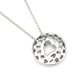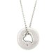 圆形吊坠中间镂空作心形,配上粉红美钻,型格独特,纯银制作,是送给挚爱亲友的絶佳生日礼物。 吊坠尺寸:直径约18mm 项链长度:18寸