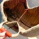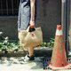 提把、固定圆片,皆为手染皮革 固定绳也为皮绳