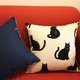 每组‘猫咪款’抱枕套正面图案,会因为取布位置而略有不同,但都有一只戴着金色铃铛的猫咪,抱枕背面为深红色素布。‘猫咪款’抱枕套限量5组,皆为现货,预购从速喔!