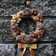 完全手工制作的花圈,用各种不同特质的布料(金葱花纹布/毛毡/PU皮/缎带/毛线)制作,呈现布料不同颜色层次和质感,让小巧的花圈也能呈现丰盛的感觉!