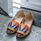 Woven Leather Huarache, Loom-Made ( AZO free) Cotton Fabric Top.