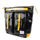 方正包型,正面上部以纯棉提袋做为装饰设计