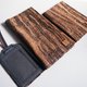 采用天然水松木制成。水松木(又称软木)是檞树(橡树一类)的树皮,树龄约十多岁便会长出一吋左右的树皮,采摘后经消毒,把水松木压成一片薄薄的布料。一棵木松木可经多次采摘,八年后又长出层层的树皮。这块水松木纹布料经过烟熏,压成木纹。