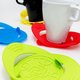**多功能矽胶垫跳脱一般单一功能的普通杯垫设计,具备双翼扣合的特殊专利结构,可轻易拿取杯碗,达到止滑隔热之效果;也可避免手部被冰冷之容器表面凝聚的水珠沾湿,可用为杯垫或汤碗之隔热垫表面采古篆体春夏秋冬,呈现窗花般汉字之美外,凹凸图纹亦有集水功能,以免冰冷杯表面凝聚的水珠流落桌面。将矽胶垫套于瓶、罐锁盖上,可提供极佳的摩擦力,使开启锁盖更加轻易。**