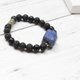 【材质】阿富汗青金石原石、A级磨砂黑玛瑙8mm、火山岩8mm、合金