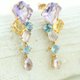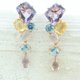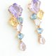 -6mm 四边形切角紫晶配彩色宝石银耳环