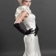 实际为一件连身礼服,改良式鱼尾裙摆营造膨松感,身形感觉更高挑
