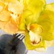 色彩鲜明的绿东亚兰搭配橘色绣球