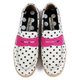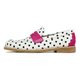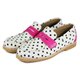 Upper:Polka Dots Printing Canvas with Cow Leather Decorative Bar