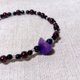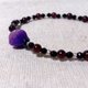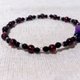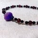 浓浓深红的红石榴石给妳带来幸福的能量,让妳更有自信、更加光彩。红色的力量也能为妳解除烦忧,让妳能更为顺心。佐上浓郁强烈深层的黑玛瑙给予人们稳定的力量,代谢掉负面的能量,让人得以沉淀与舒缓,更可以趋吉避凶,快快远离一切不好的事情。搭配低调炫彩的银灰色捷克珠,再点缀浓蓝理性的青金石。最后再趣味地佐上一颗带着多层次紫彩的舒俱徕石,可以强化妳的灵性,让一切获得释放,找回净化后的新力量,如此看不腻的紫色光彩更显自信的趣味感,so cute!