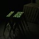 运用回收的环保栈板材料,运用最省材料的结构设计,并运用夜光树脂涂料,填满原本丑陋的钉子孔,让原本木头的缺点摇身一变,成为黑暗中的亮点。