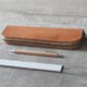 此笔袋以 2.5mm 厚度的硬皮制成,简约造型立体感十足。采进口植鞣皮手工制成,此植物单宁酸鞣制而成,较为环保且对人体较无害,此皮革物从裁切、缝制,到一针一线皆是采上蜡线手缝,比机器缝制更有人味且耐用!此款为牛皮原色经多次上油养护,让其提早呈现淡橘焦糖的色泽。(贩售商品仅有皮革笔盒,其他文具为摆饰)
