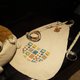 底色采用素色本白棉麻帆布,搭配品牌基色:蓝绿色点点
