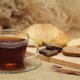 取7~8朵杭菊+姜黄玫瑰四物黑糖一片,以400cc热开水冲泡。