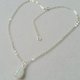 925纯银系列:大尺寸(长16mm, 濶9mm,厚5)强蓝光月亮石 纯银锁骨链 (石编号:60)
