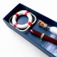 木杆、金属笔尖、墨水、模型救生圈、软木塞玻璃瓶